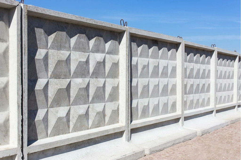 Бетонный забор Плита забора ЖБИ П5Вк изготавливают из бетона высокого качества и армируют с помощью сварных сеток из высококачественной стали. За счет такого сочетания панельное ограждение способно выдерживать большие нагрузки на растяжение и сжатие. Марки бетона для ограждений обеспечивают хорошую водонепроницаемость и морозоустойчивость.